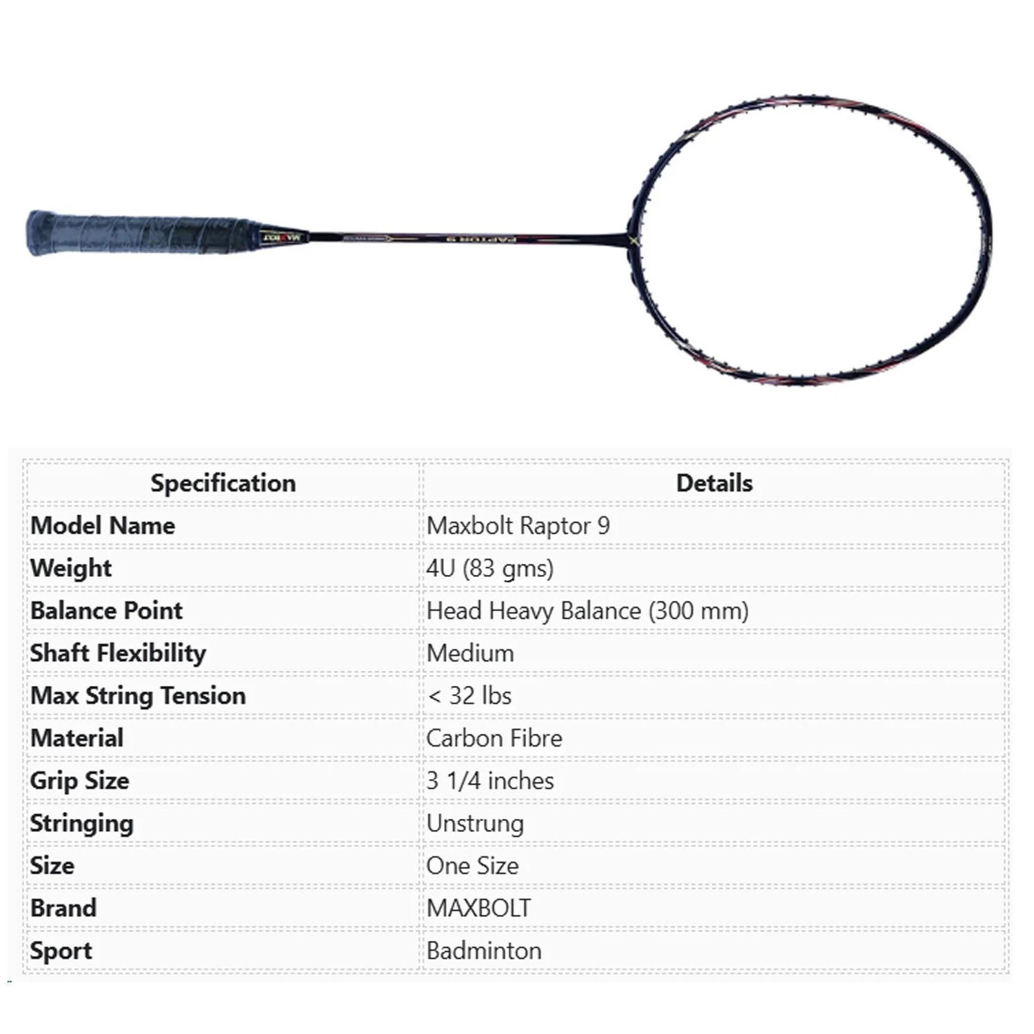 Maxbolt Raptor 9 Badminton Racket (Unstrung)